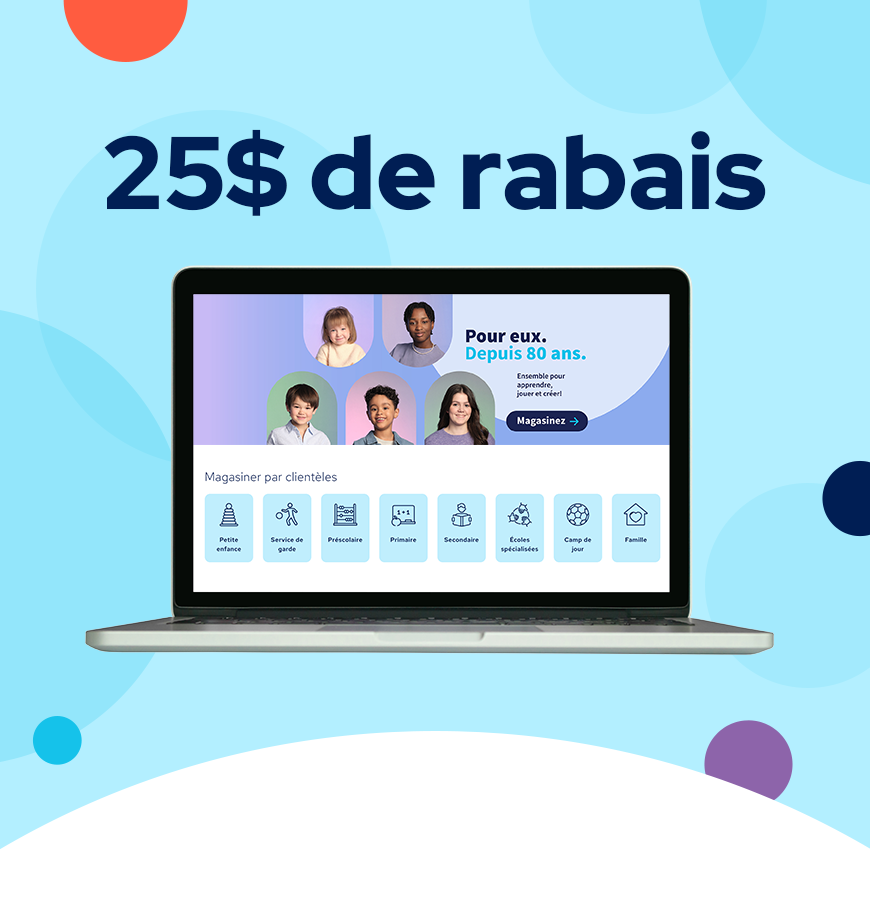 Code promo : NOUVEAUSITE25. Offre valide jusqu’au 22 février à l’achat de 150$ ou plus.