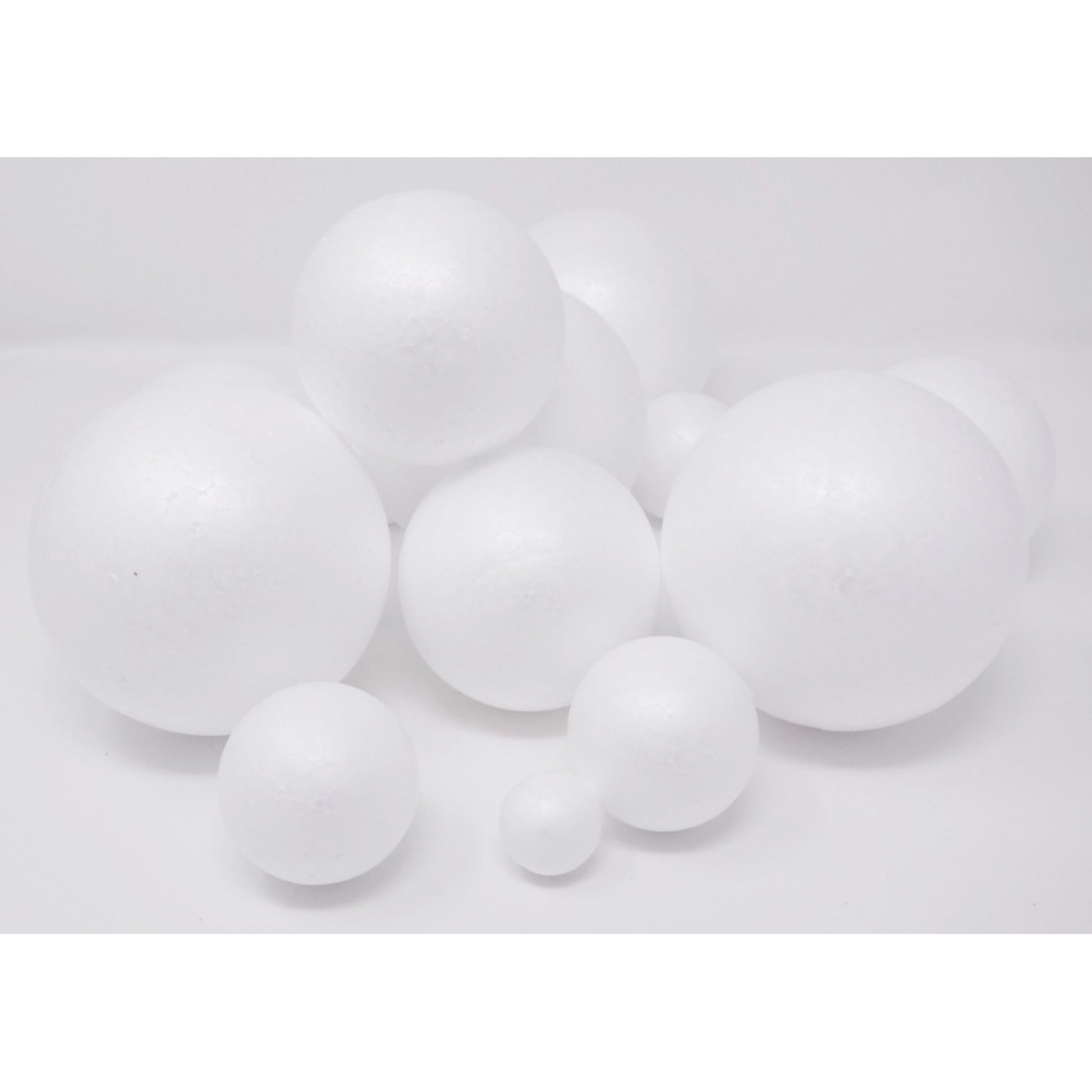 Pack of 16 Smooth surface Styrofoam balls in various sizes; 25 mm, 50 mm, 75 mm, 100 mm, 4 of each.