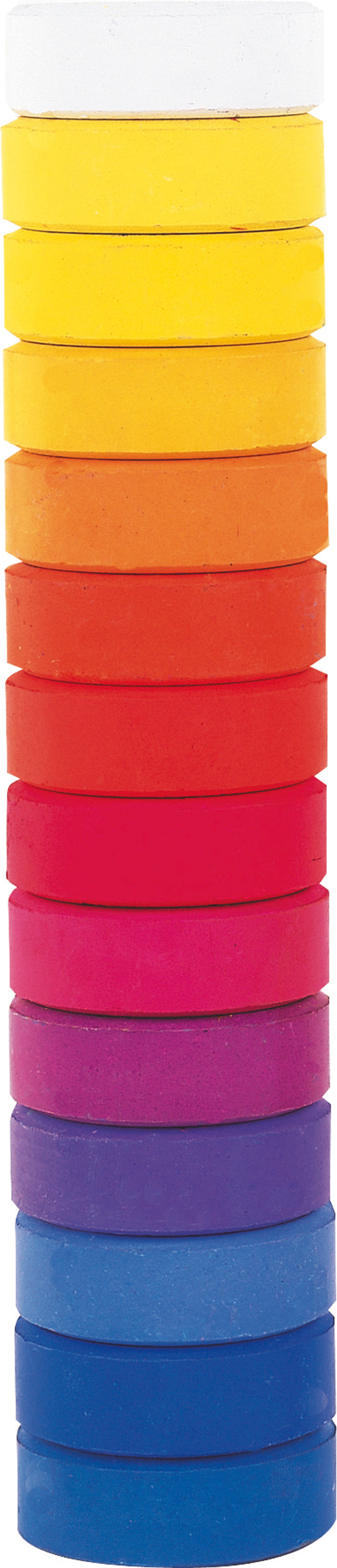 School-quality, economical tempera blocks. 57 mm in diameter, 19 mm thick. Colour pigments compressed in a hard and dry block that gradually dissolves upon contact with water. Sold in packs of 6 blocks. Non-toxic.