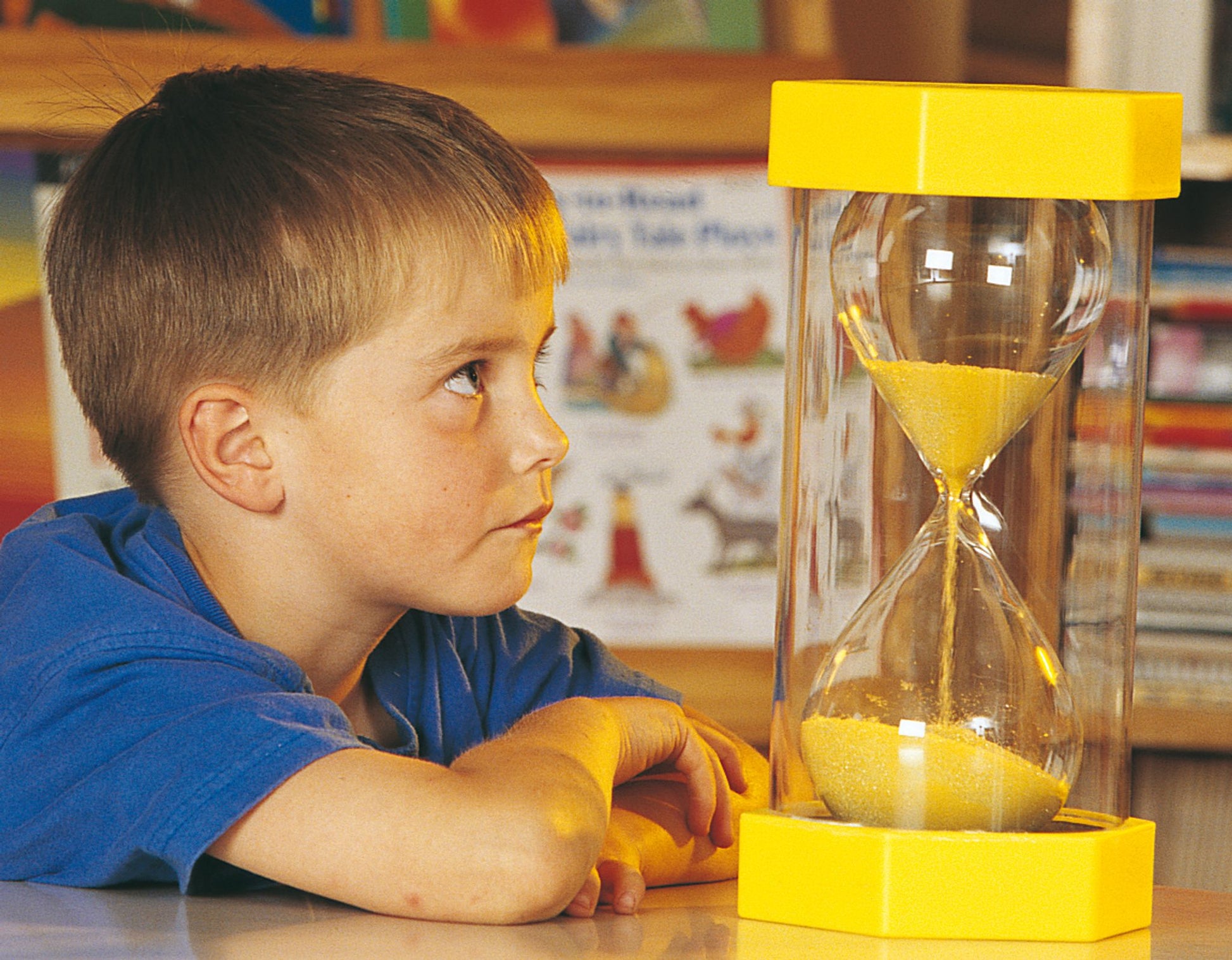 Mega sandglass. 15 x 30 cm high. 5 minutes. Blue.