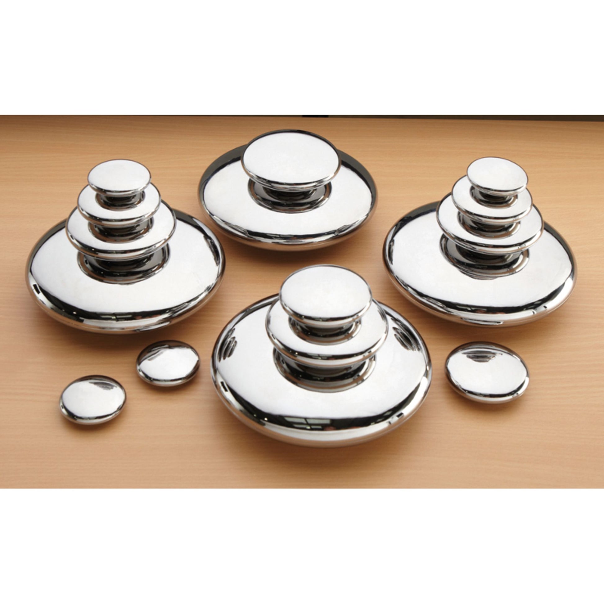 Set of 20 silver pebbles in 4 different sizes range from 4.5 to 15 cm. Sort, sequence, count or balance them in a variety of open-ended and teacher-directed activities. Pebbles have wonderfully reflected distorting properties, float on water and cloud when breathed on. They are hollow, light and even safe for babies to play with. They dazzle on a light table or near sparkly fabric or patterned paper (all not included).