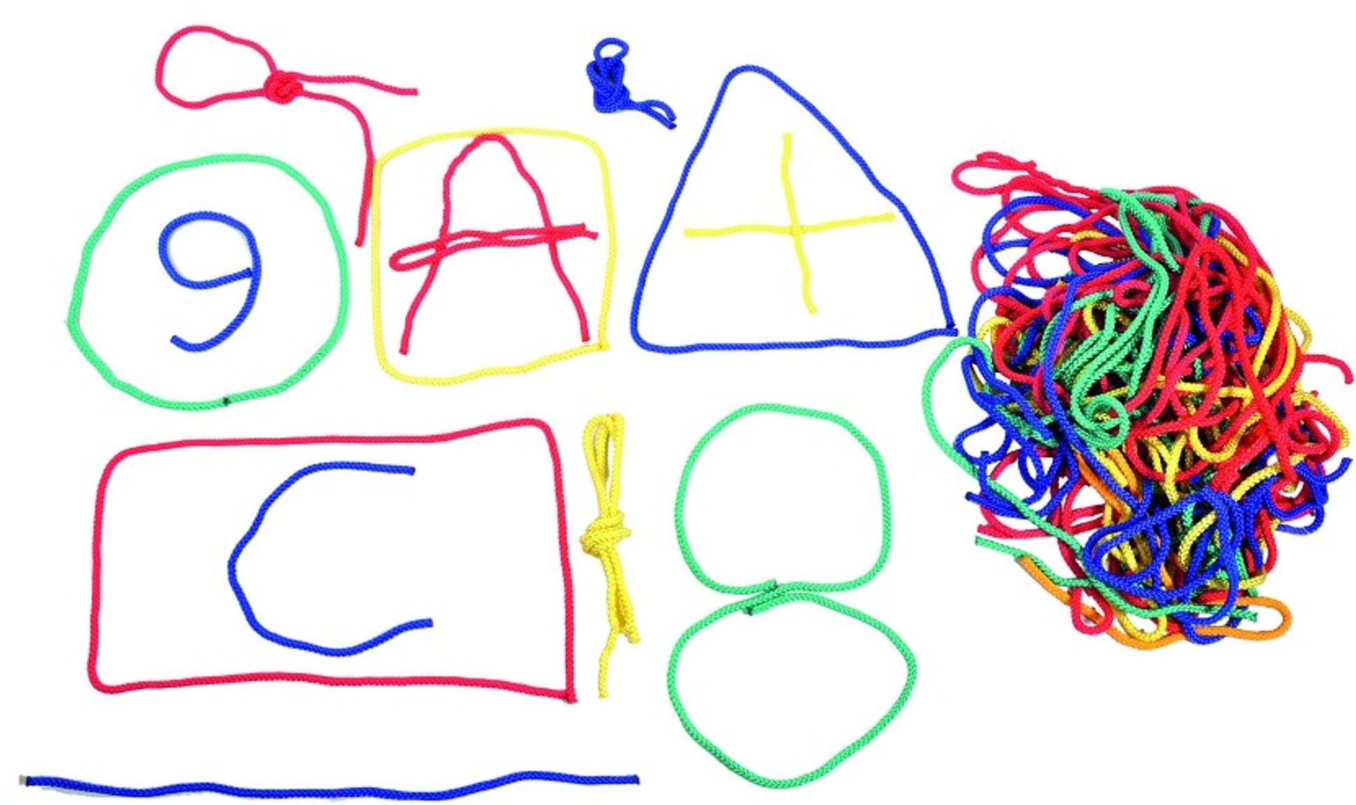 Original assortment of around 40 ropes 50-200 cm long in varied colours. Quickly set up a variety of races and paths on the ground, without using chalk or floor marking tape. Can also be used to compare lengths and learn to make knots. Sturdy, braided polypropylene.