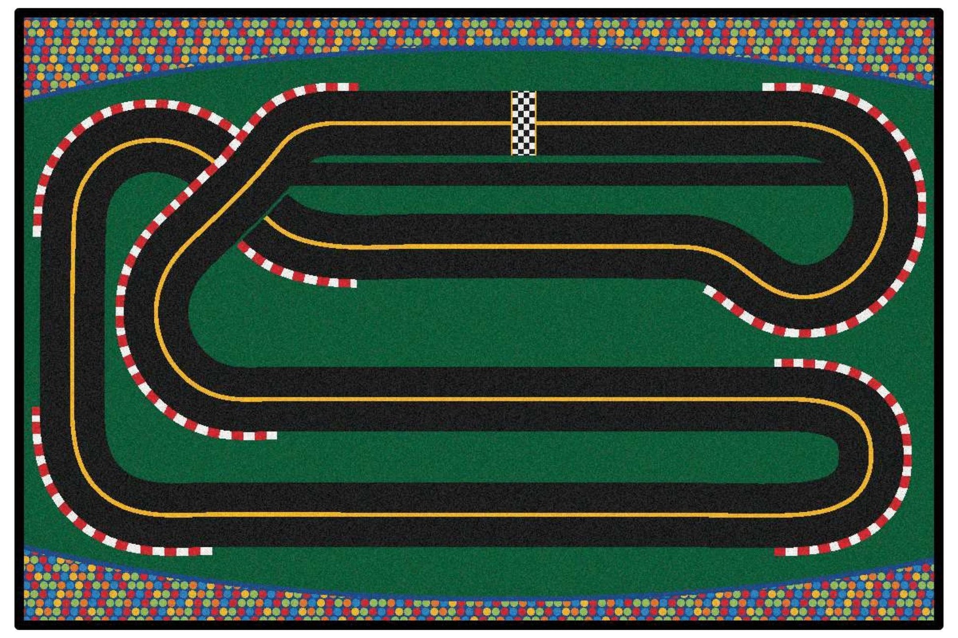 Printed with a large racing track, with plenty of tight curves for added excitement. Use with your own cars and blocks. Roll up after play or leave out. 3-year limited abrasive wear warranty. Wash using only hot water extraction, to provide a clean and healthy environment. Washable without harsh chemicals. Rectangular 122 x 183 cm