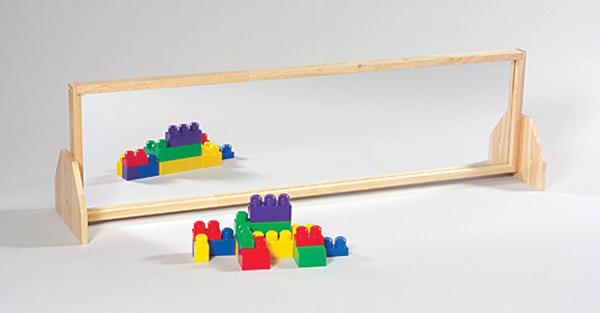 Miroir en acrylique. Cadre en bois dur de 122 x 33 cm. Peut être placé à la verticale ou à l'horizontale selon l'assemblage des supports. Assemblage aisé.