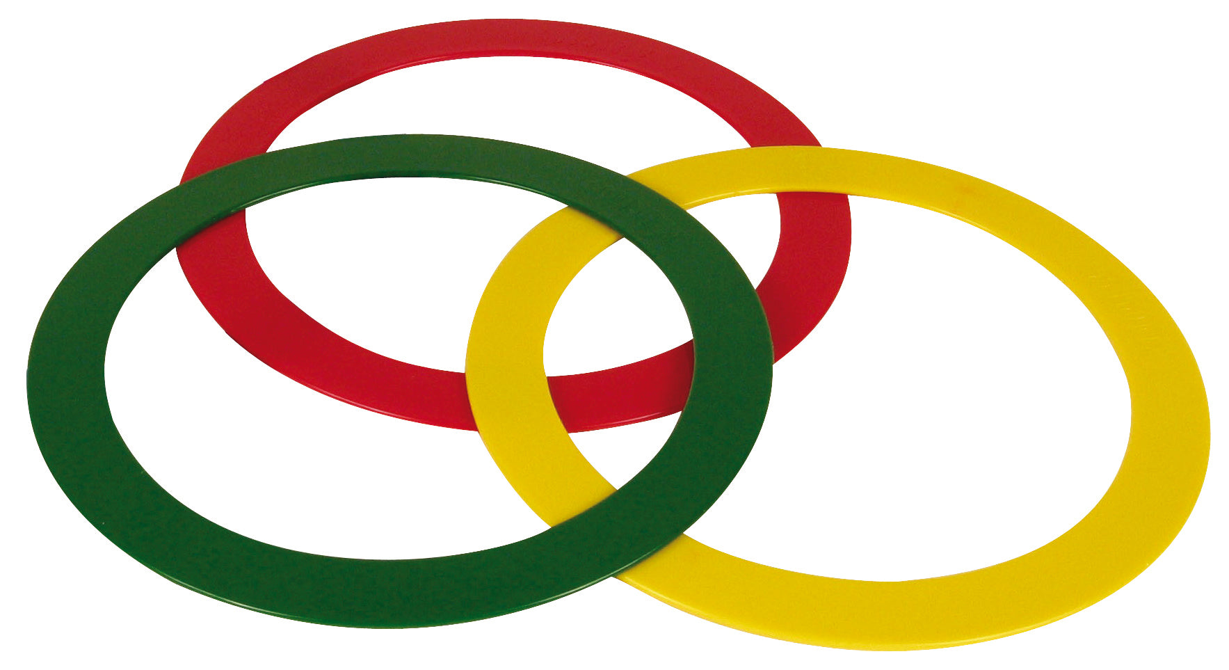 Ensemble d'anneaux en plastique de couleurs variées. ø 32 cm.