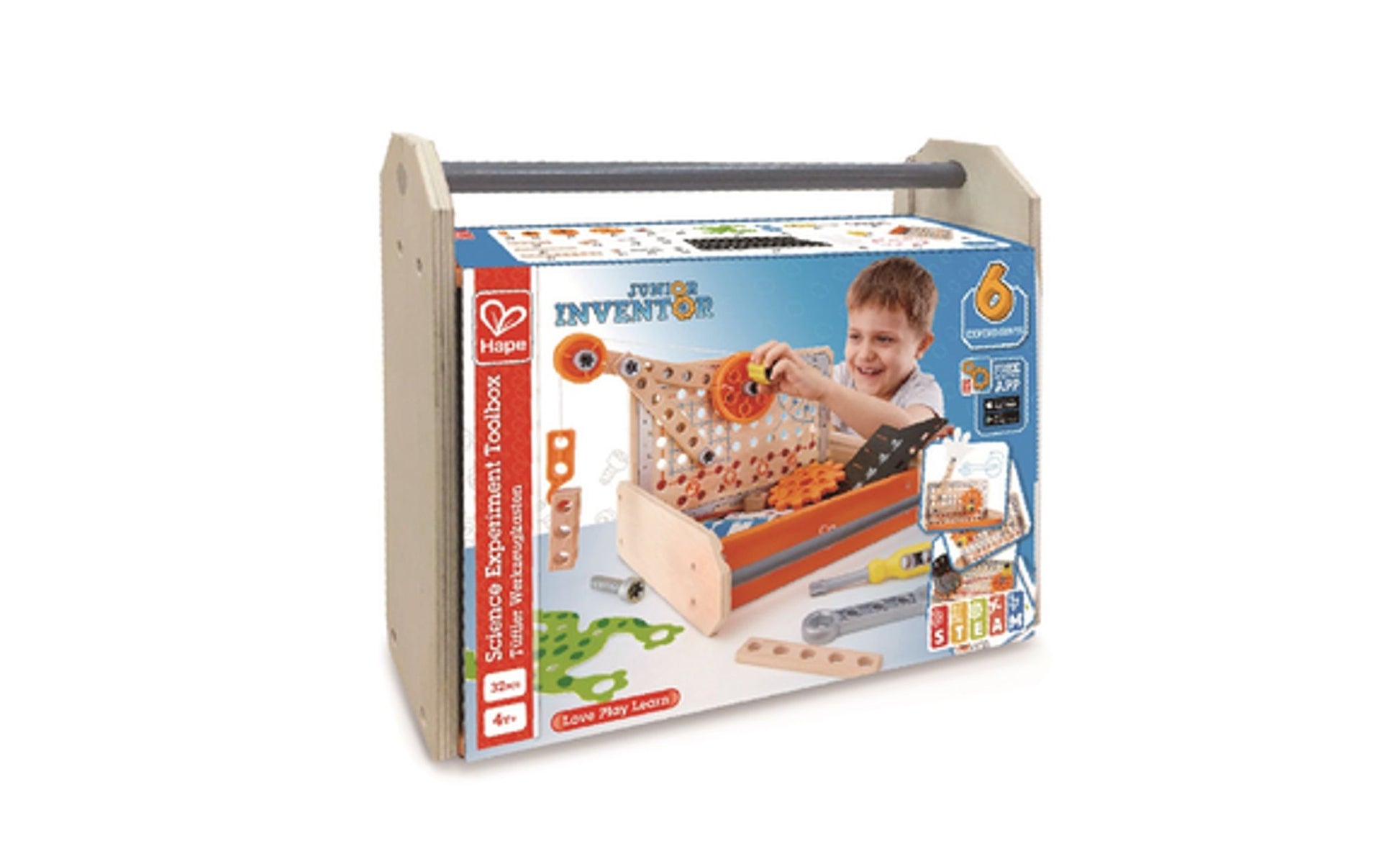 Les petites boîtes cachent souvent de grandes choses! Ce coffre à outils compact permet aux jeunes enfants d'expérimenter le monde scientifique qui les entoure. Propose 6 projets inventifs. Inclut 32 pièces.