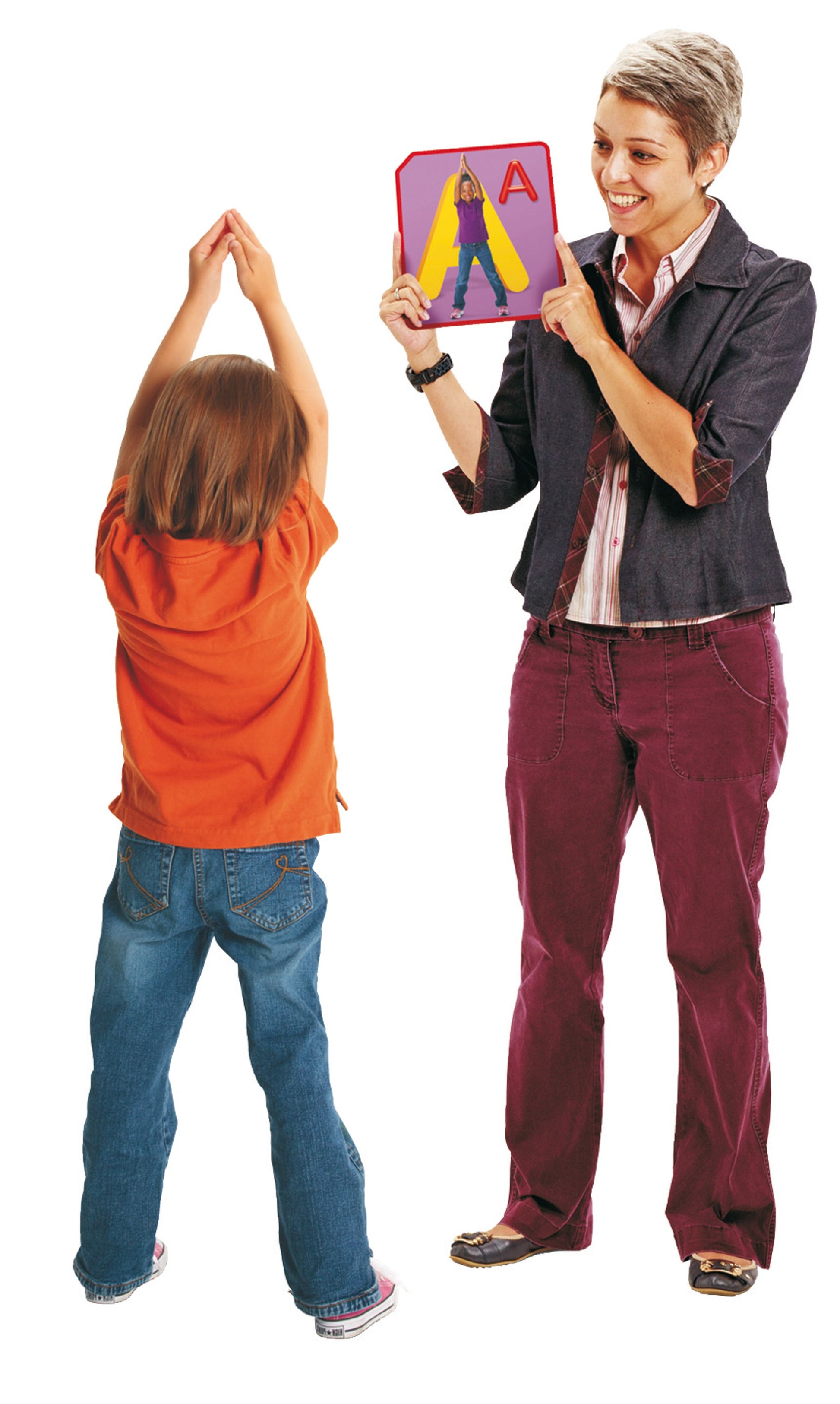L'approche kinesthésique au service de la littéracie. Les élèves reproduisent les poses illustrés sur chaque grande carte alphabétique ou s'amusent à faire des jeux de mots en groupe. Jeu de 48 cartes de 23,5 x 21 cm à code couleur, pour séparer les consonnes et les voyelles.