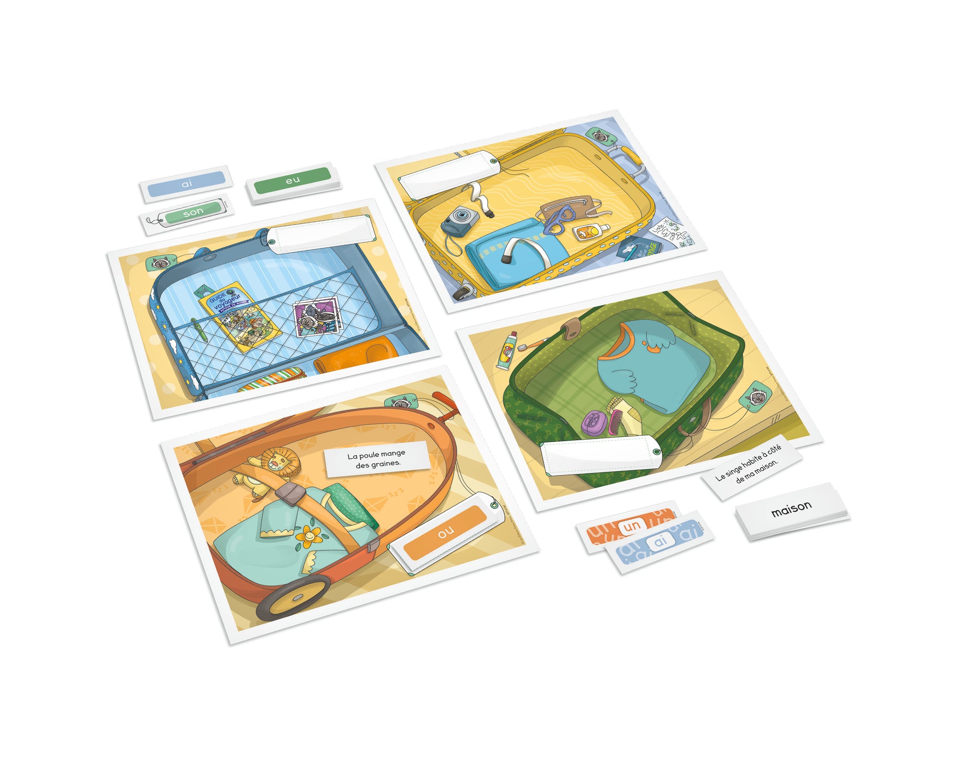 Regroupe 6 jeux de français stimulants où les joueurs aident le personnage Mousseline à réaliser différentes activités au cours de son périple autour du monde. Chacun vise des apprentissages essentiels variés : décodage de mots et de non-mots, association de mots à des catégories, repérage de graphèmes, accords en genre et en nombre de noms et de leurs déterminants, compréhension de lecture et identification d'informations importantes dans des phrases. Inclut les jeux suivants : La valise à sons, Le carrousel des mots, Les mots imposteurs, Les accords sont au menu, Le carnaval lexical et Lecture en photos.