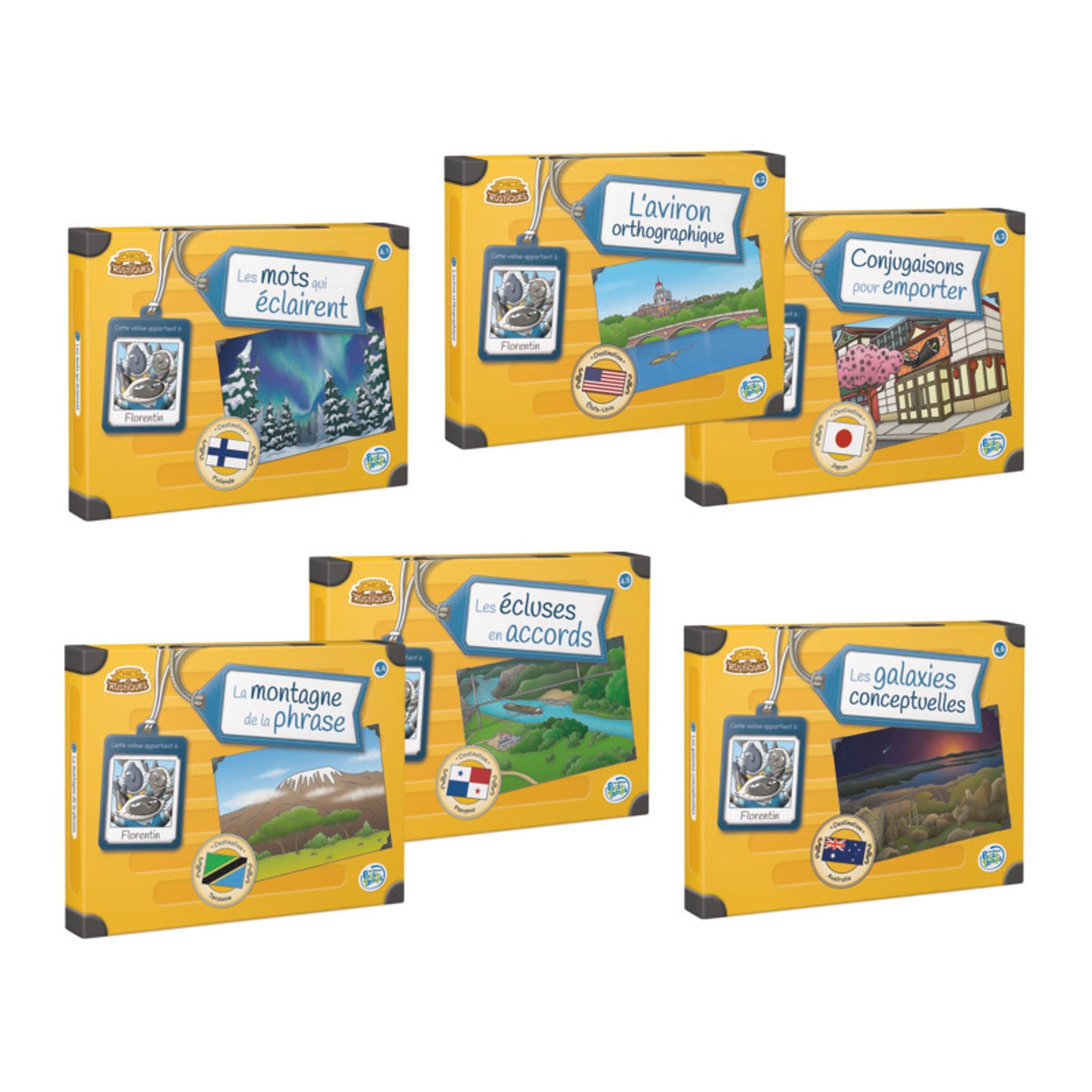 Regroupe 6 jeux de français stimulants où les joueurs aident le personnage Florentin à réaliser différentes activités au cours de son périple autour du monde. Chacun vise des apprentissages essentiels variés : l'identification de la classe des mots et les différents types d'accords à effectuer dans une phrase, l'apprentissage de règles d'orthographe lexicale, la conjugaison des verbes avoir, être et aller ainsi que tous les verbes sous les modèles d'aimer et de finir, l'identification des groupes qui occupent les fonctions de complément de phrase et de sujet dans des phrases, l'apprentissage de règles de formation du pluriel et du féminin, la reconnaissance et l'organisation des idées principales d'un texte. Inclut les jeux suivants : Les mots qui éclairent, L'aviron orthographique, Conjugaison pour emporter, La montagne de la phrase, Les écluses des accords et Les galaxies contextuelles.