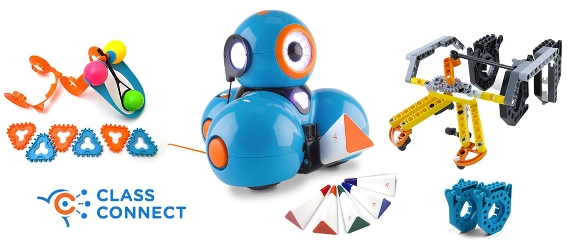 Cet ensemble comprend le robot Dash, des accessoires et les accès au logiciel pour les élèves de la maternelle et du primaire.