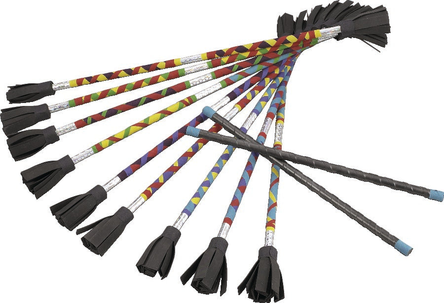 Appelé aussi bâton-fleur, on le lance dans les airs pour exécuter différentes figures. 73 cm de long. Avec 2 bâtons en bois recouverts de caoutchouc.