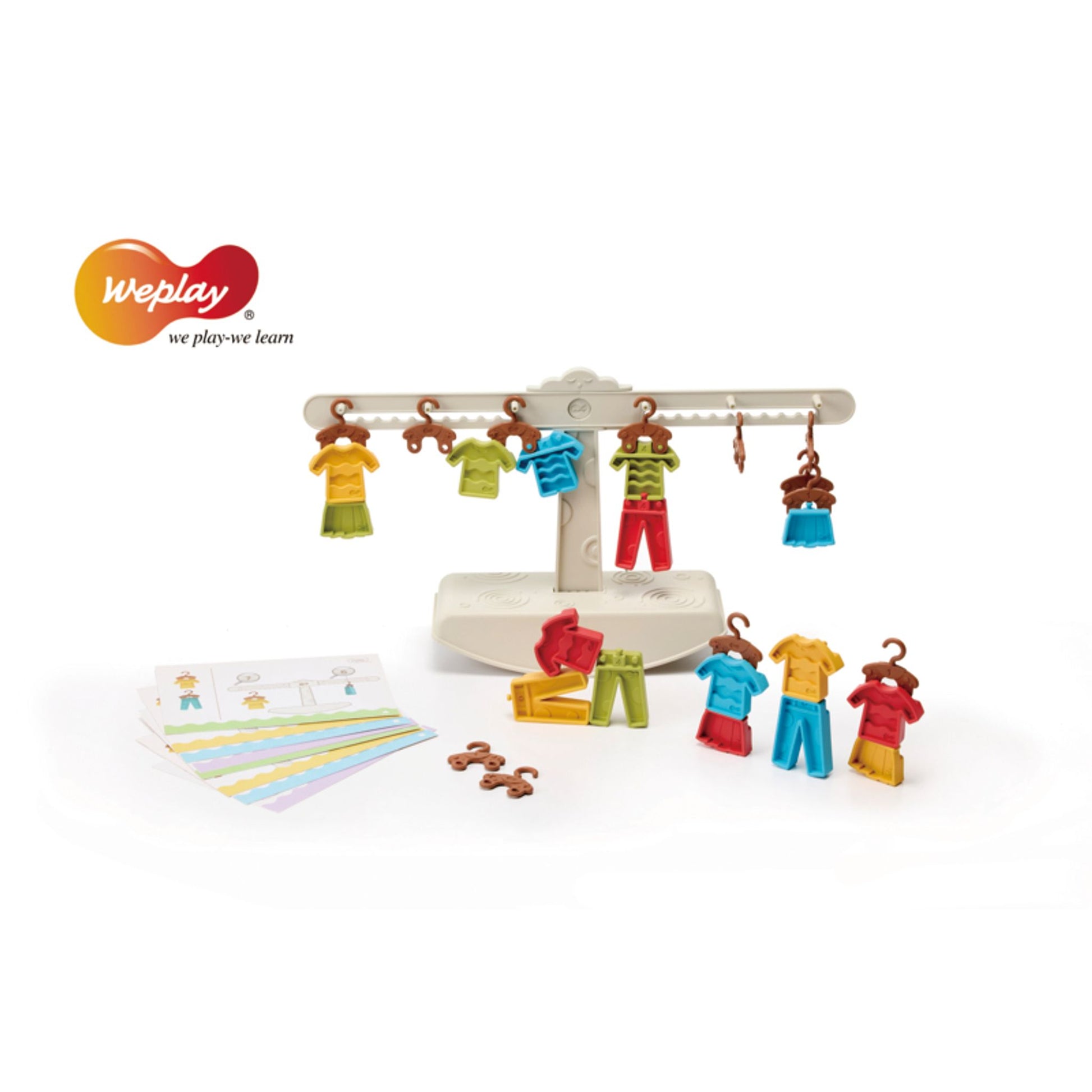 L'amusante balance recto verso, facile à assembler, exerce des capacités d'association, d'addition, de soustraction, de résolution de problèmes, de langage et de motricité fine. Avec des encoches numérotées de 1 à 10 et des boutons, pour suspendre les pièces de deux façons. Tous les cintres et vêtements sont gravés de leur poids, pour les associer aux encoches. Les pièces s'emboîtent et se superposent aussi librement, pour faire des constructions. Avec 9 fiches d'activités mathématiques recto verso. Balance : 48,8 x 11,7 x 26,8 cm. Pantalons : 5 x 1,5 x 7,2 cm. En plastique robuste.