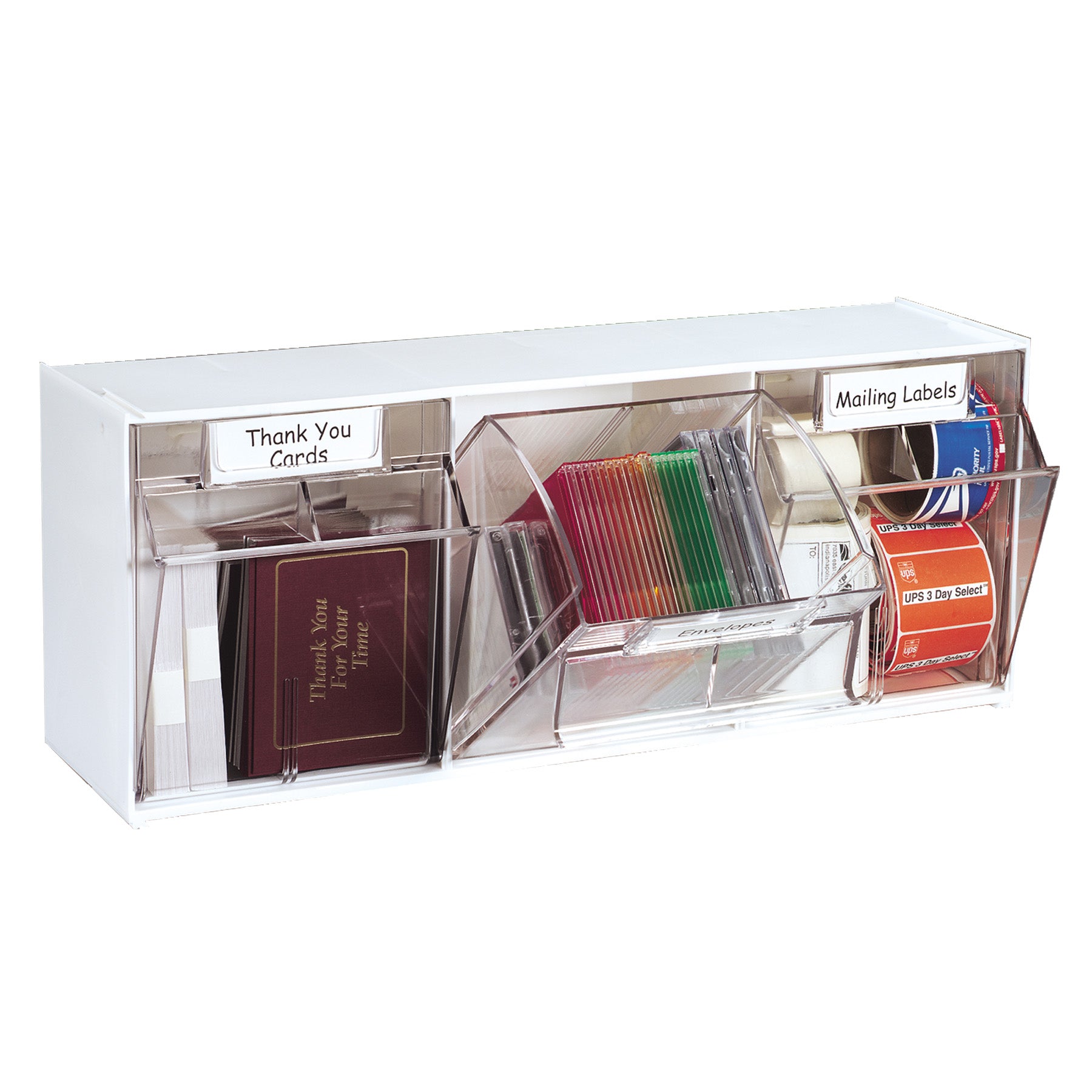 Unité modulaire qui permet d'agencer les tiroirs de diverses tailles. Des tiroirs transparents et amovibles accueillent les fournitures qui demeurent visibles et accessibles grâce au mécanisme d'inclinaison. Comprend les éléments de fixation.