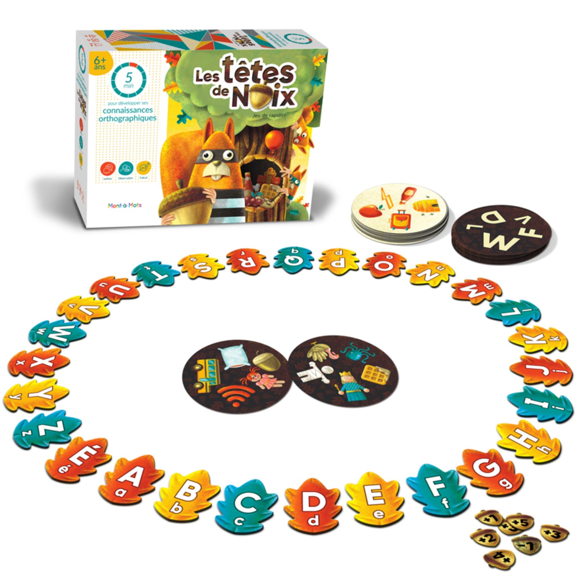Il faut vite trouver sur la carte la première lettre de l'un des éléments illustrés sur l'autre carte pour obtenir un nombre aléatoire de points. Comprend 2 ensembles de cartes recto verso, 3 niveaux de difficulté et 3 variantes de jeu. Avec 1 ta ... Afficher plus