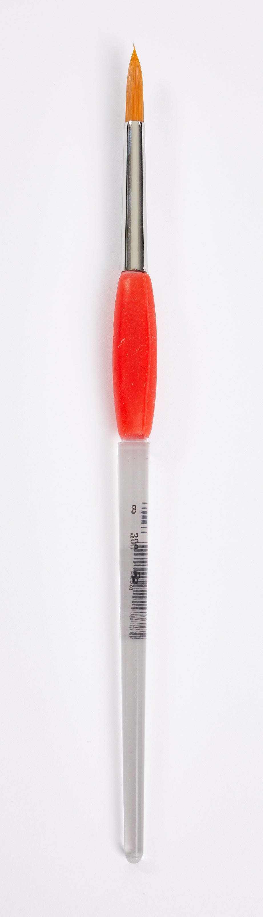 Pinceaux ronds en fibre synthétique dorée. Manche court en acrylique translucide. Prise en caoutchouc. Virole en aluminium brillant argent.