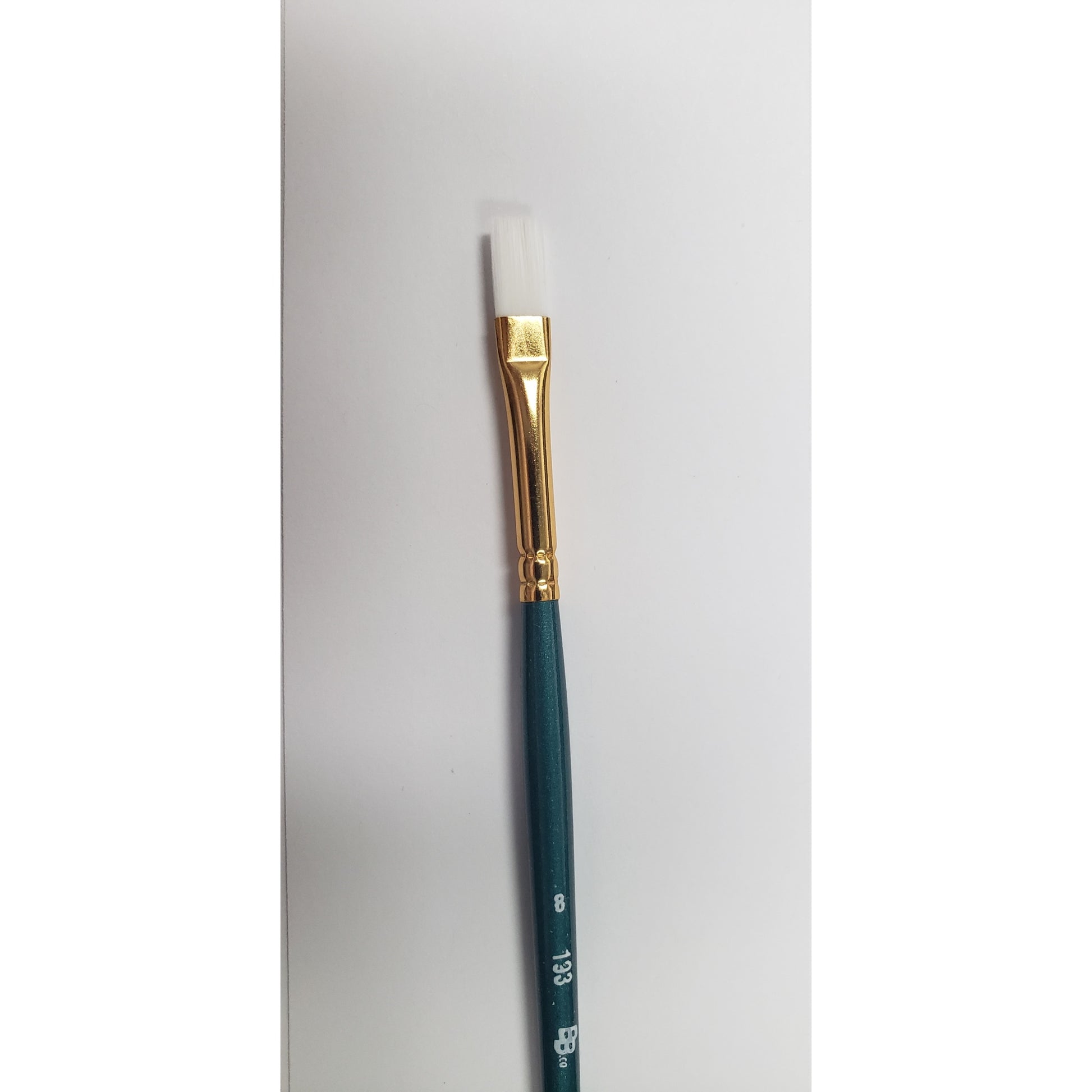 Pinceaux plats longs en fibre synthétique blanche. Pour tous les médiums aqueux, aquarelle, gouache, encre et acrylique. Manche court de 145 mm et virole en aluminium doré.