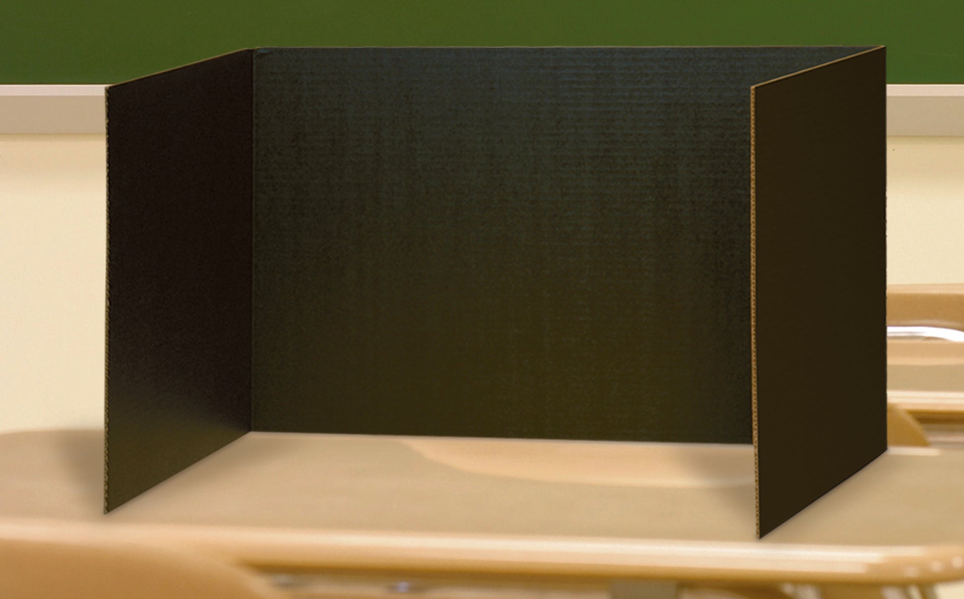 Contribuent à garder les élèves concentrés, les yeux sur leur tâche, et à éloigner les distractions. Idéals sur un pupitre, une table ou un poste d'ordinateur. En carton ondulé recyclé et recyclable, pour être à la fois robustes et portatifs. Colorés des deux côtés. Ensemble de 4. 61,2 x 18,2 x 40,6 cm de haut. ch.