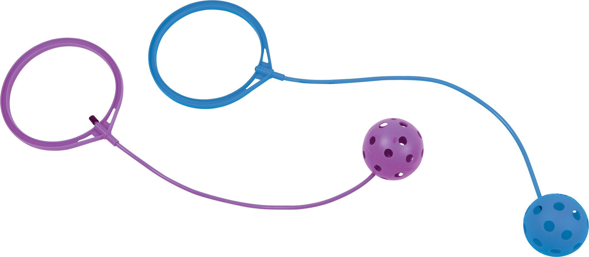 On glisse la cheville dans l'anneau, puis, d'un mouvement de la jambe, on imprime une rotation à la balle. Elle doit alors décrire un cercle ininterrompu, sans heurter l'autre pied qu'il faut soulever. Tout plastique. Anneau vendu à l'unité offert dans des couleurs variées. Anneau ø 13,7 cm. Corde : 45 cm de longueur. 5 ans