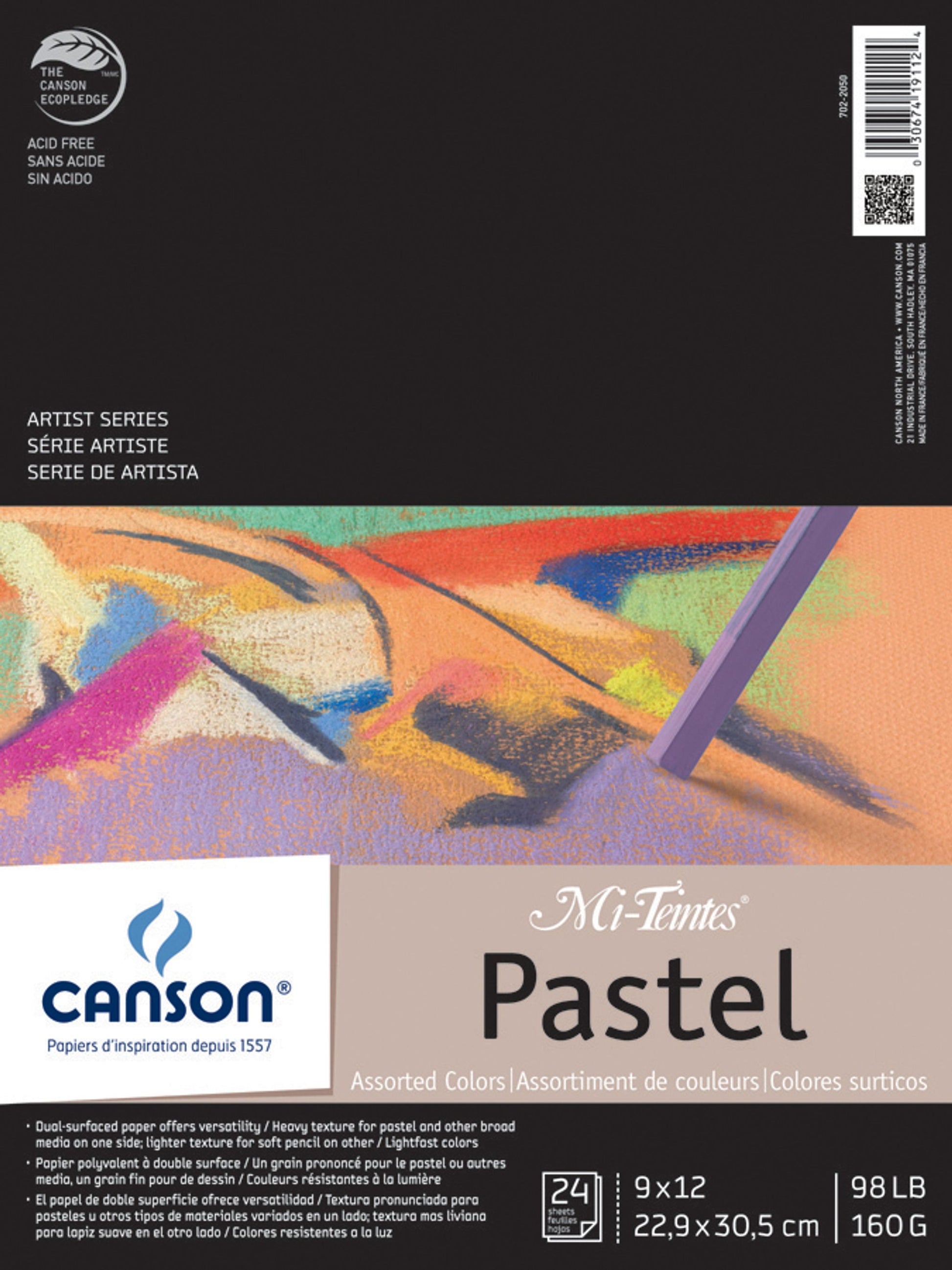 Papier texturé aux couleurs variées, idéal pour le fusain et le pastel. Tablette de 24 feuilles. 23 x 30 cm (9" x 12").