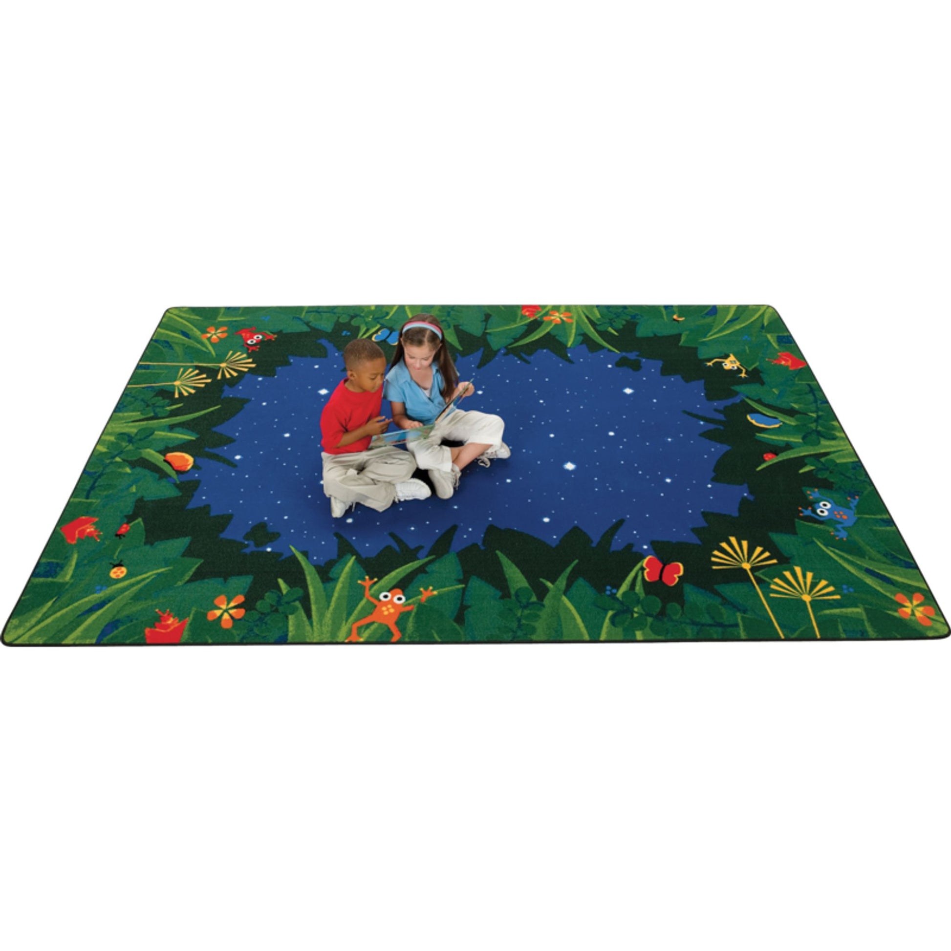 Un ciel apaisant constellé d'étoiles, une verdure sereine et quelques grenouilles farfelues créent un environnement parfait pour l'heure du repos ou du conte, ou tout autre rassemblement. Rectangulaire 3,2 x 2,3 m.